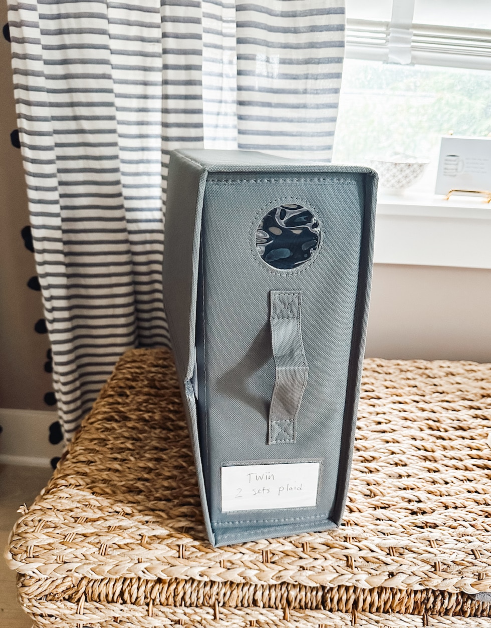 Bed Sheet Organizer – Something I was influenced to buy that I worried was going to be a waste of money but turned out to be one of my favorite organizing tricks for our small house!