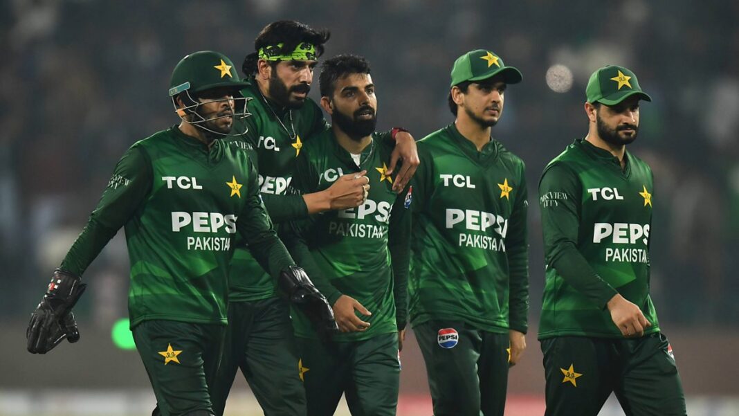 Image – LAHORE, PAKISTAN – JANUARY 31: Players of Pakistan celebrates wicket of Cooper Connolly of Australia during the T20 International match between Pakistan and Australia at Gaddafi Stadium on January 31, 2026 in Lahore, Pakistan. (Photo by Sameer Ali/Getty Images).