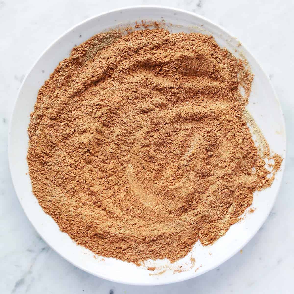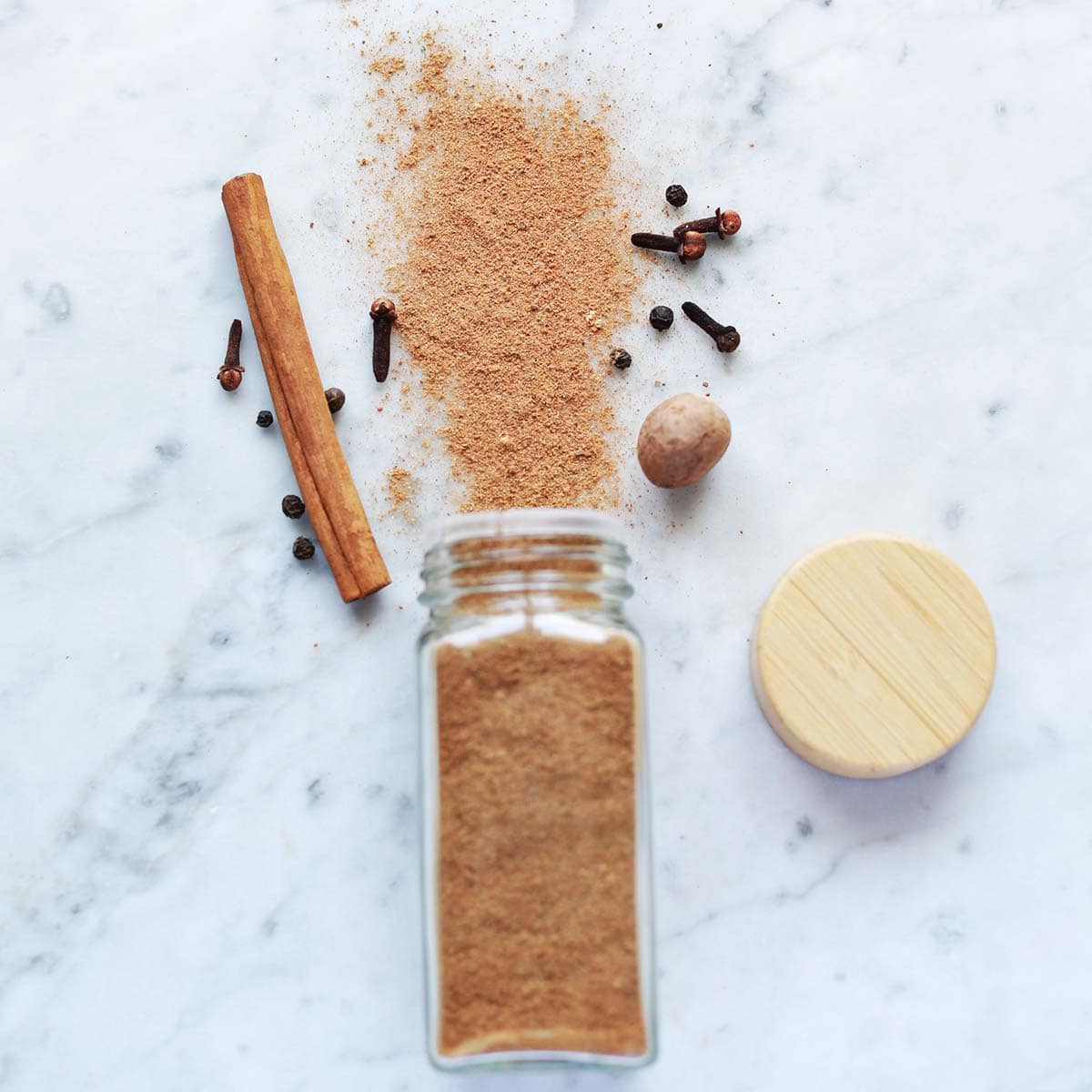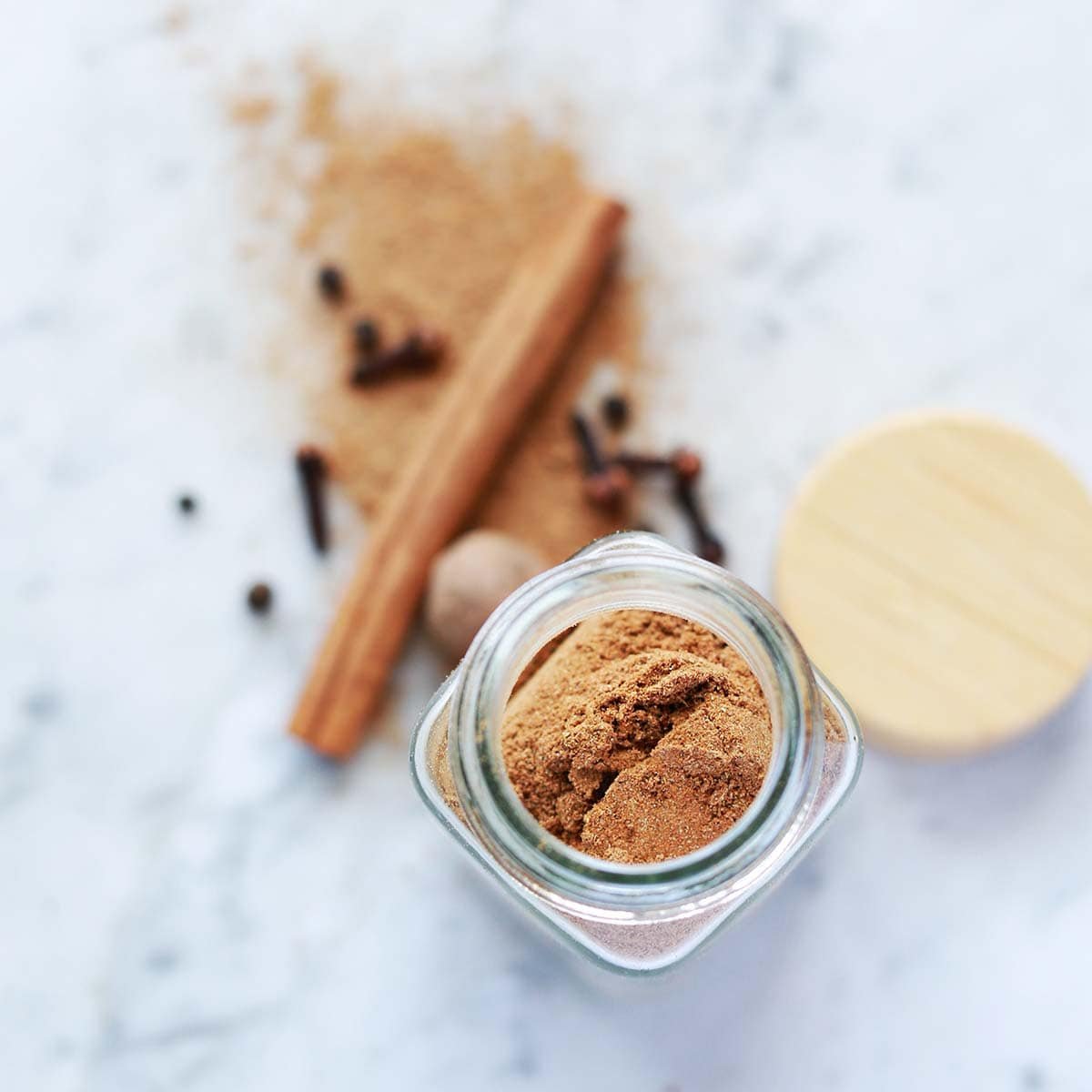 A warm, complex spice mix made of cinnamon, cardamom, ginger, nutmeg, cloves and pepper.