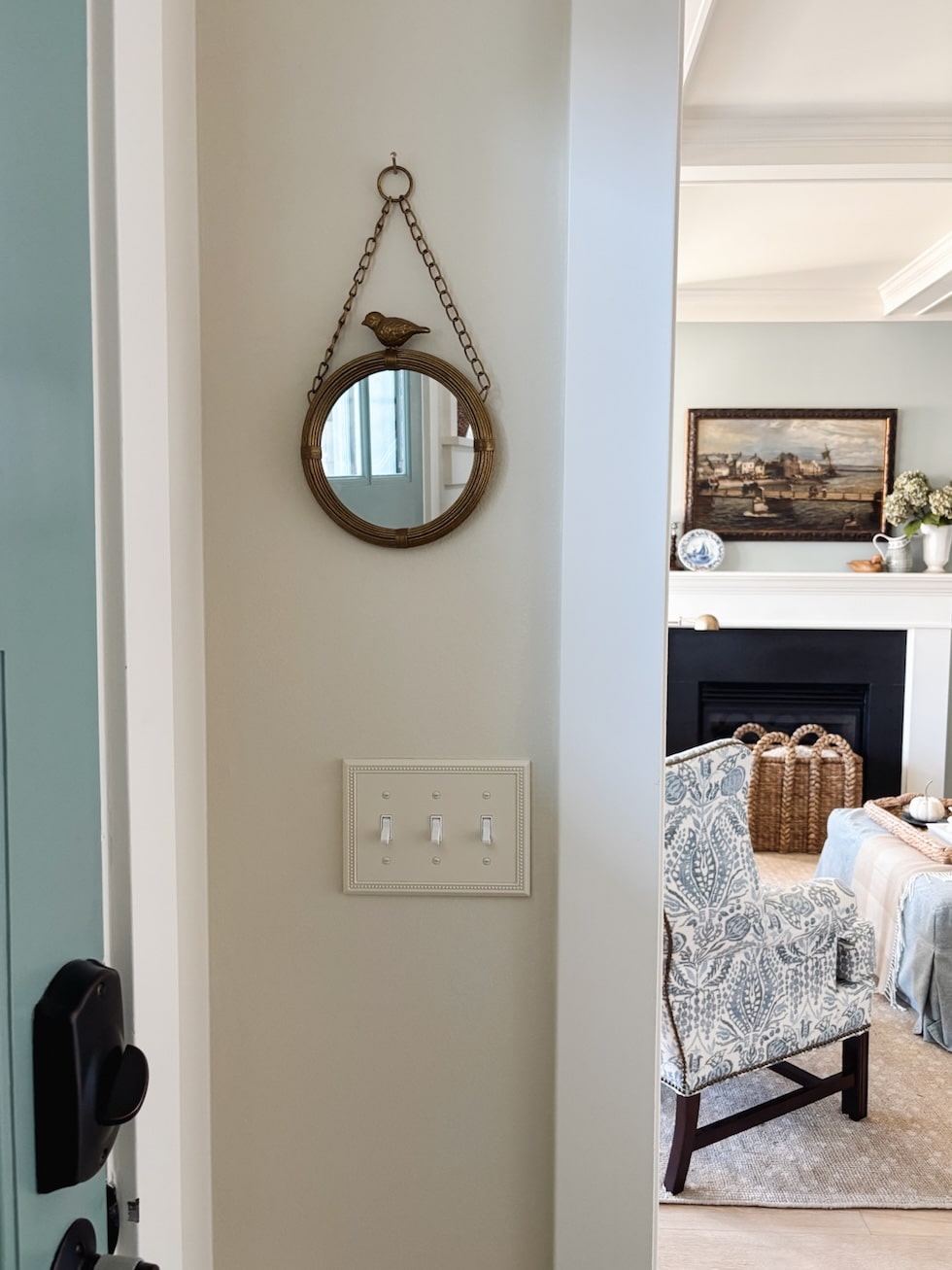 I have never liked our white plastic light switch covers, so I finally started swapping them out room by room with plates that have a little more character. I didn’t want brass (I’ll explain why another time) but I found some that had a bit of “old home” charm but didn’t require painting or any effort to install. They come in white too, but I chose the creamier tone for our house.