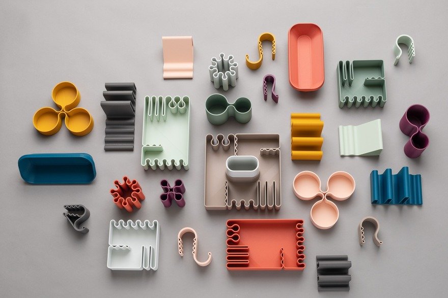 Bene Office’s sustainable, closed-loop 3D-printed recyclable desktop organizers.