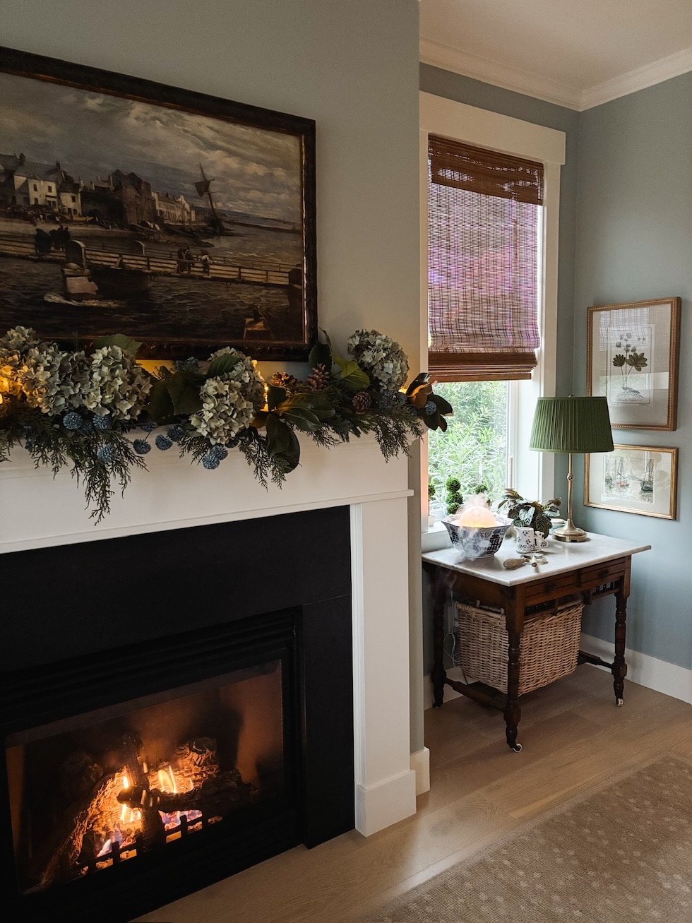 How I Hang Garland on our Stove Hood, Mantel and Staircase