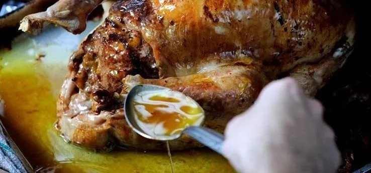 Basting just means distributing the drippings onto the skin of the turkey, so who says you need a special utensil to do it? Just about anything that holds liquid will work. You can use a large spoon, a ladle, a brush, or even a mug with a handle to pour the juice over your bird.