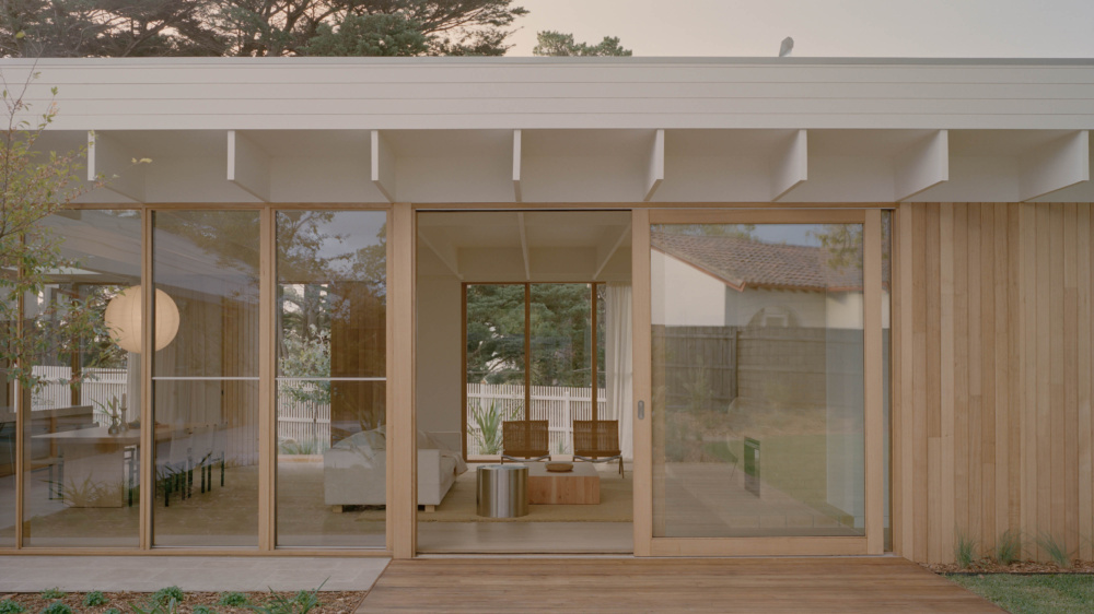 Inside A Striking Mornington Peninsula Beach House Transformation. The new extension sits quietly behind the original facade of the cabin-like home. Photo – Tasha Tylee. Styling – Tatjana Melchiorre.