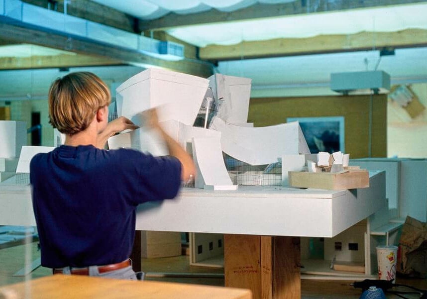 In 1947, he and his family moved to California, where he worked as a truck driver and enrolled at Los Angeles City College. He transferred to the University of Southern California’s architecture school where he graduated in 1954, the same year he changed his name to Gehry, stemming from concerns related to antisemitism. Gehry had a brief stint in the U.S. Army after graduation. In 1956, he enrolled in the urban planning program at the Harvard Graduate School of Design, but he didn’t graduate, having dropped out.
