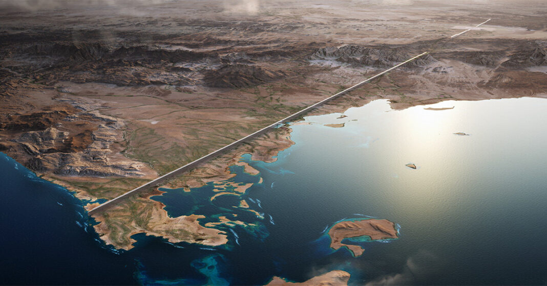 a 170-kilometer-long mirrored megacity slicing through the desert