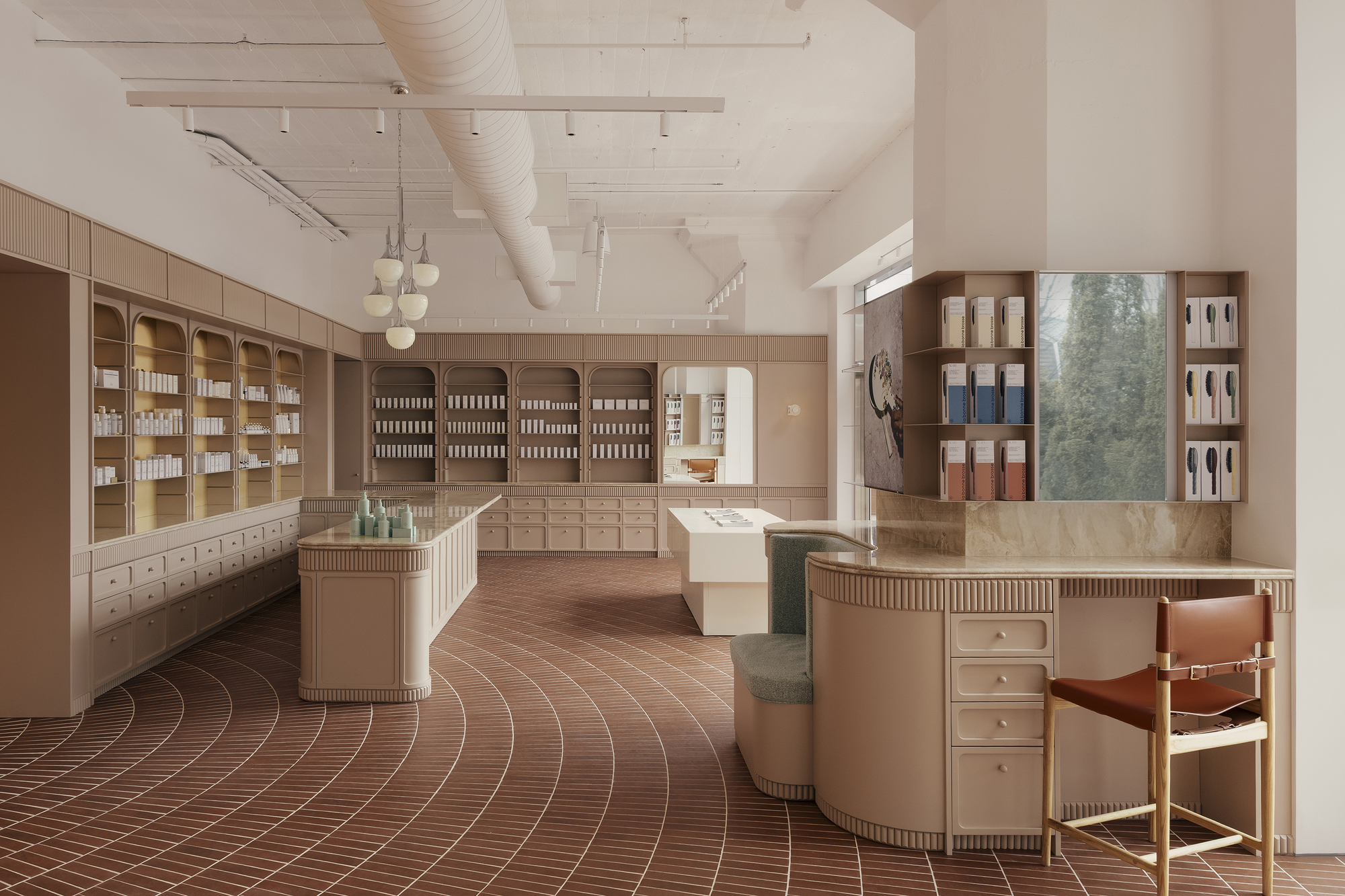 Text description provided by the architects. Throughout history, apothecaries have acted as spaces of both curiosity and care. Traditionally defined by dark wood, elaborate detailing, and a plethora of small drawers containing unseen intrigues, these service-forward spaces offered intimate consultations conducted on either side of a counter. Living Beauty boldly reinvents this bygone but invaluable typology, defining an impactful interior design identity for the luxury beauty retailer.