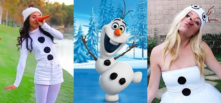 While Frozen wasn’t short on princesses, girls looking for a “cuter” Olaf costume need to look no further. Unlike the costume made by Eva above, this option uses a dress and focuses a little more on making Olaf’s head, eyes, and nose more apparent.