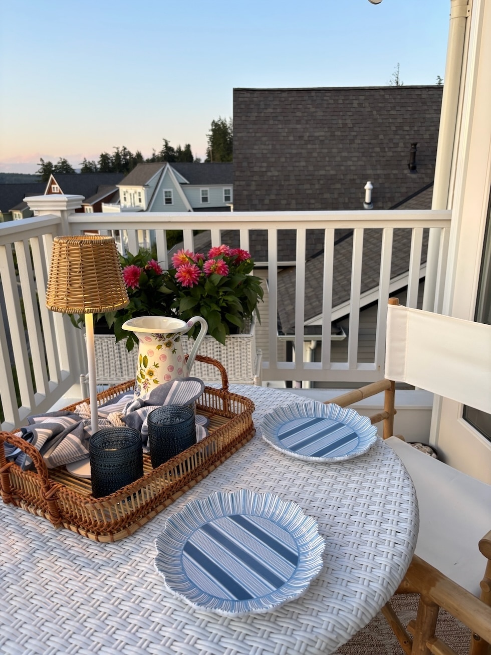 These lamps come with two interchangeable shades (I chose the set with one white and one rattan shade). There are other finishes and shade options too—including some really charming striped versions. They’re also waterproof so I use them on our porch.