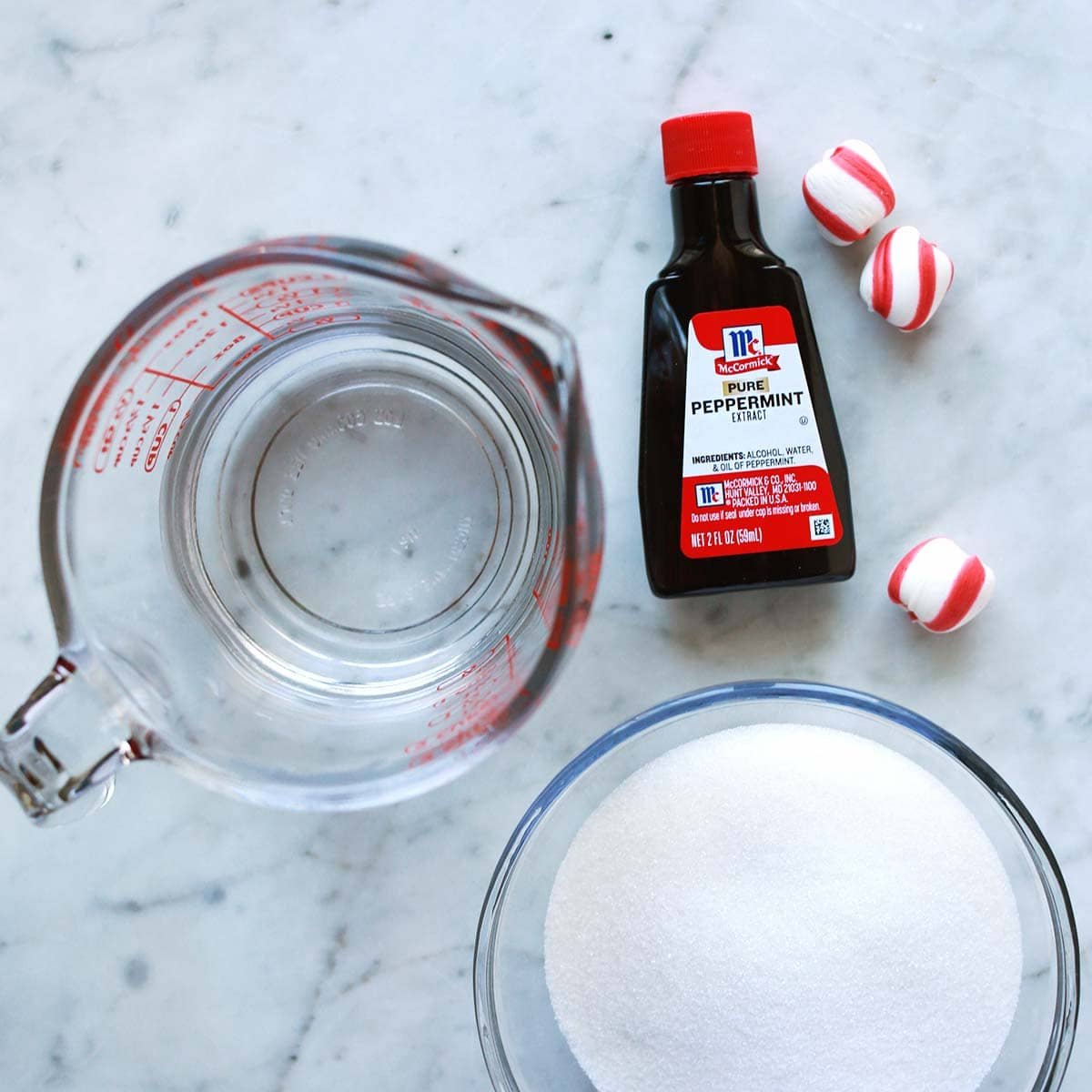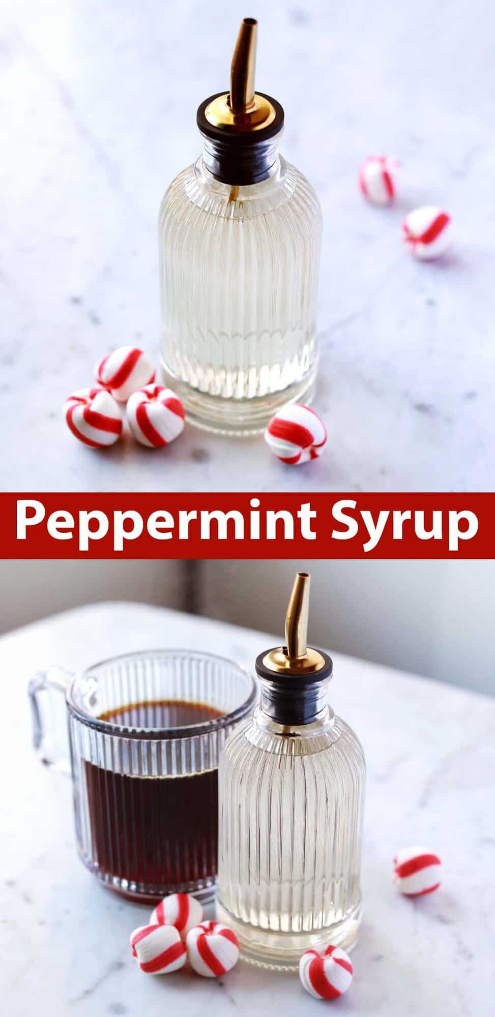 If you want to use peppermint candy (like candy canes) instead of extract simply add 1/4 cup candy pieces to the mixture after dissolving the sugar. Let simmer for 2-3 full minutes. Then allow the syrup to cool in the pan. Remove the candy pieces before storing the syrup.