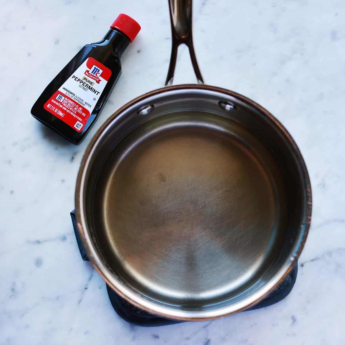 While I use peppermint extract in this recipe (it’s the easiest option for any at home cook) if needed you could use peppermint candy or fresh peppermint instead. Keep in mind peppermint is a specific kind of mint. At most groceries the fresh mint you’ll find sold in the herb section is usually spearmint or sometimes thai mint. Peppermint has a stronger taste and tends to feel almost cooling.