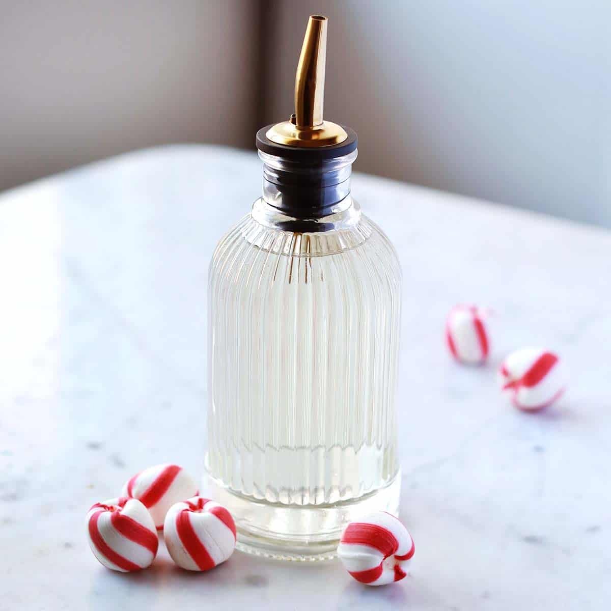 homemade simple syrup flavored with peppermint extract