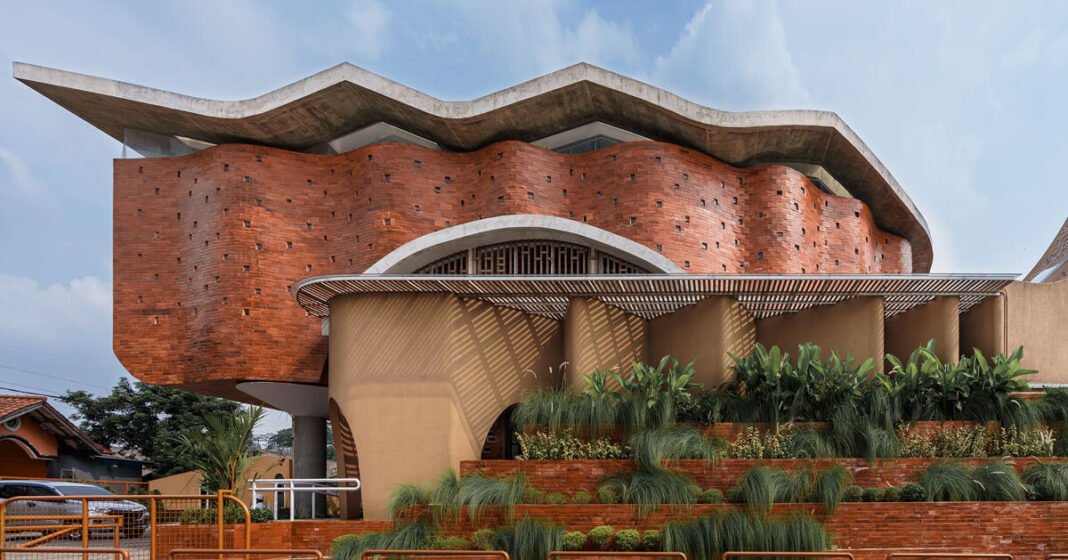 The Jami At-Taqwa Mosque in Cibinong, Indonesia, designed by Ismail Solehudin Architecture, explores the relationship between architectural form, spirituality, and community. The design concept draws from the word masjid, ‘place of prostration,’ and expands upon the spiritual act of sujud (prostration). Inspired by the writings of Imam Al-Ghazali, the architects interpret sujud as an act that metaphorically folds the vastness of the cosmos, bringing the worshiper closer to the Divine. This metaphor of ‘folding the expanse’ serves as the foundation of the project’s architectural language. The mosque’s primary form is characterized by folding roofs and pleated walls. These gestures establish a dynamic architectural identity while shaping a spatial experience defined by natural light, shadow, and material warmth. The folded surfaces evoke movement and continuity, reflecting themes of devotion and community presence.