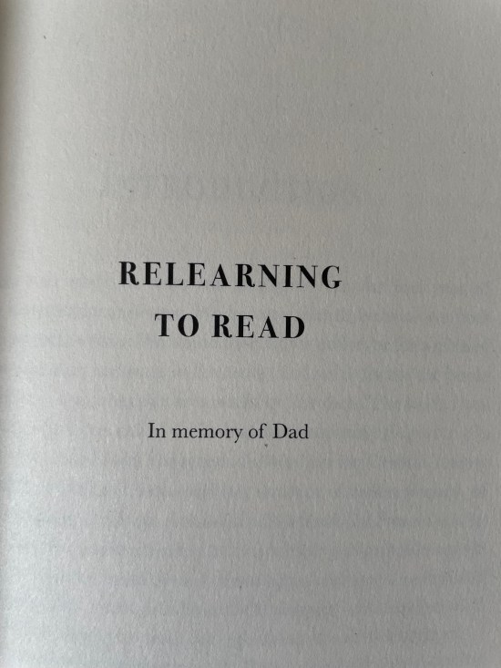 I have dedicated Relearning to Read to his memory. As it sets off around the world, it makes me smile to think that, in a way, Dad is travelling with it too.