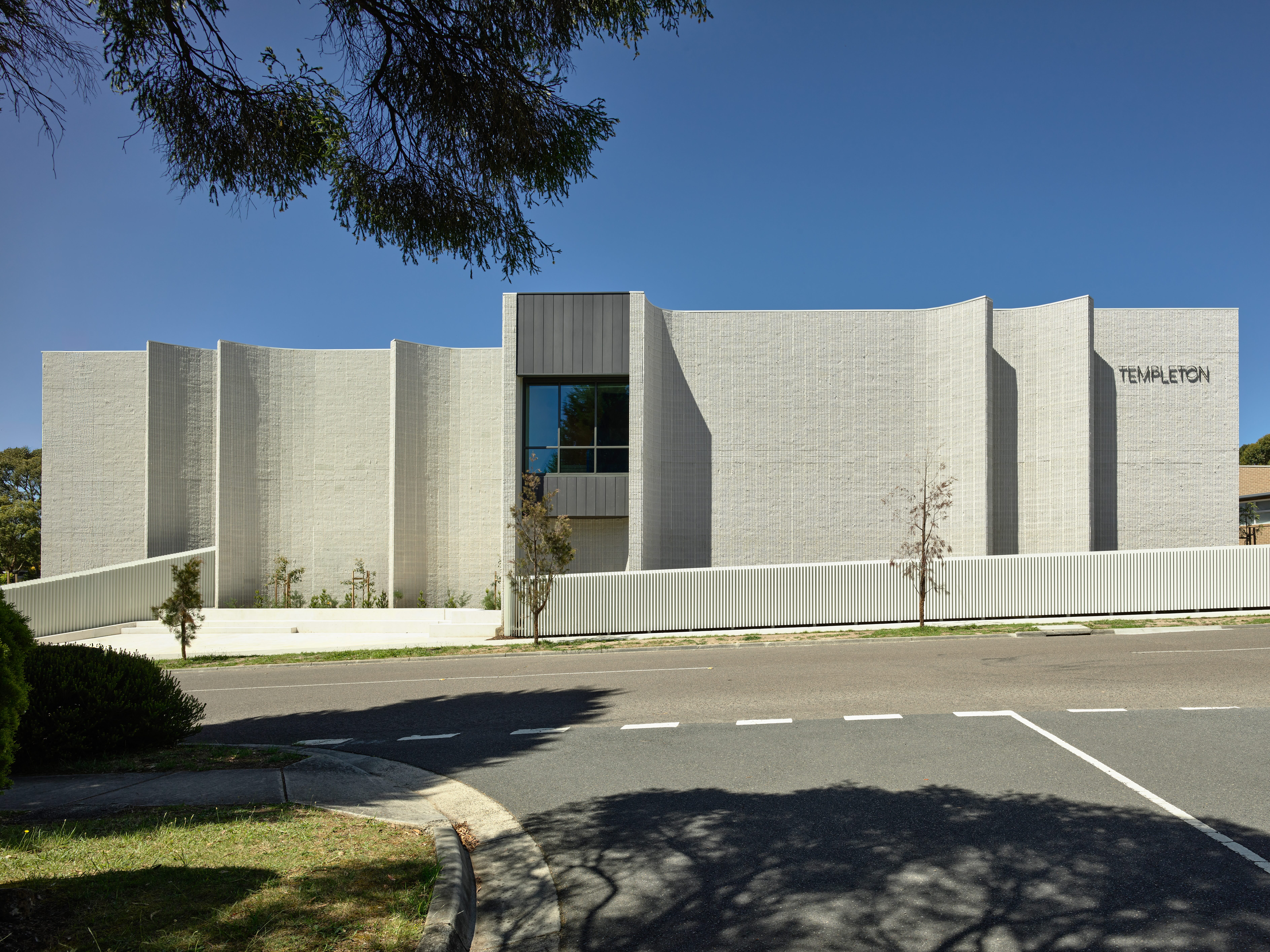 Templeton Primary School is designed as both a civic landmark and a child-centered learning environment. The two-story building sits at the edge of the suburb, drawing inspiration from historic Victorian-era masonry schools but translated into a contemporary expression of form and materiality. A folded façade on the street frontage creates a dynamic architectural gesture, offering framed glimpses of interior life while ensuring privacy.