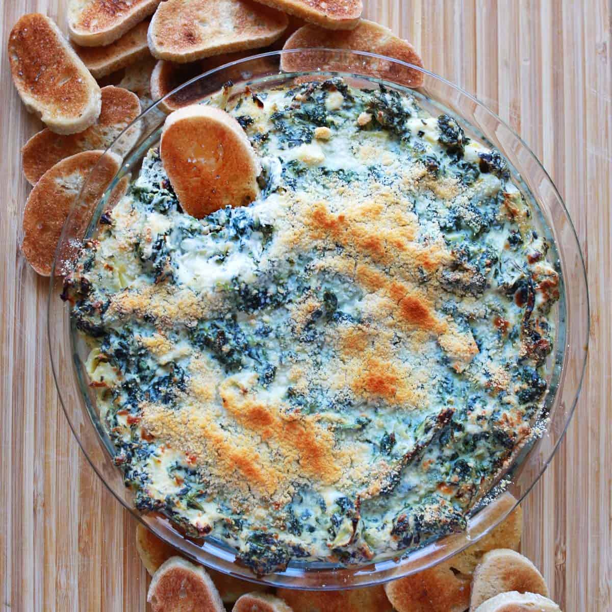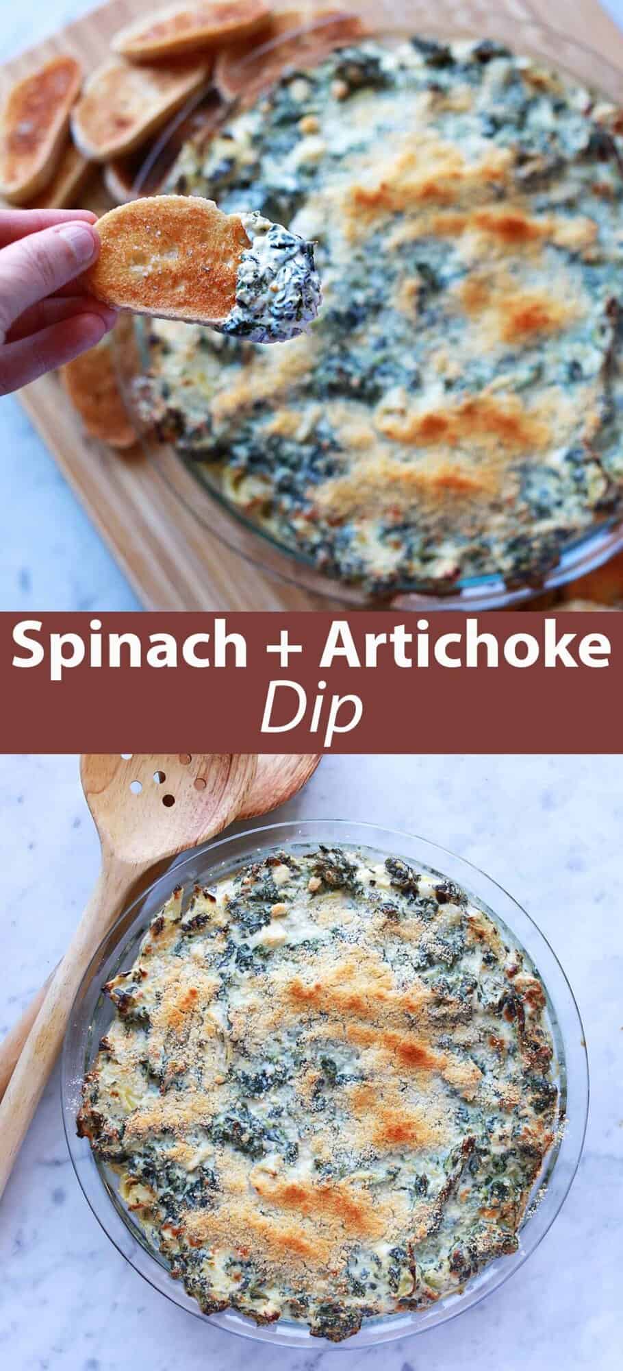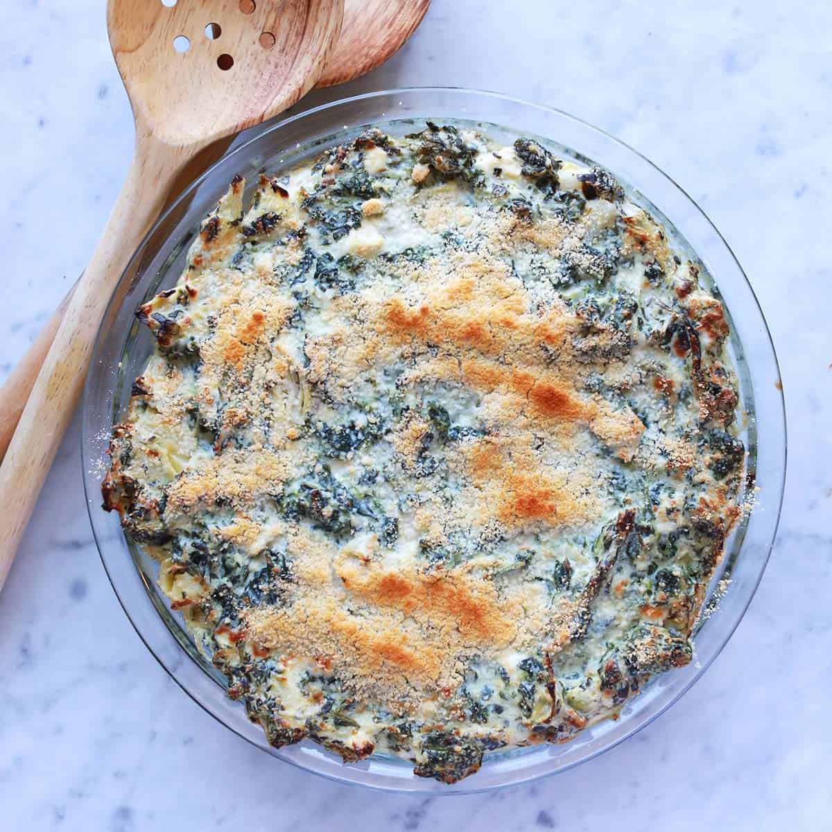 Creamy baked dip made with spinach and artichoke hearts