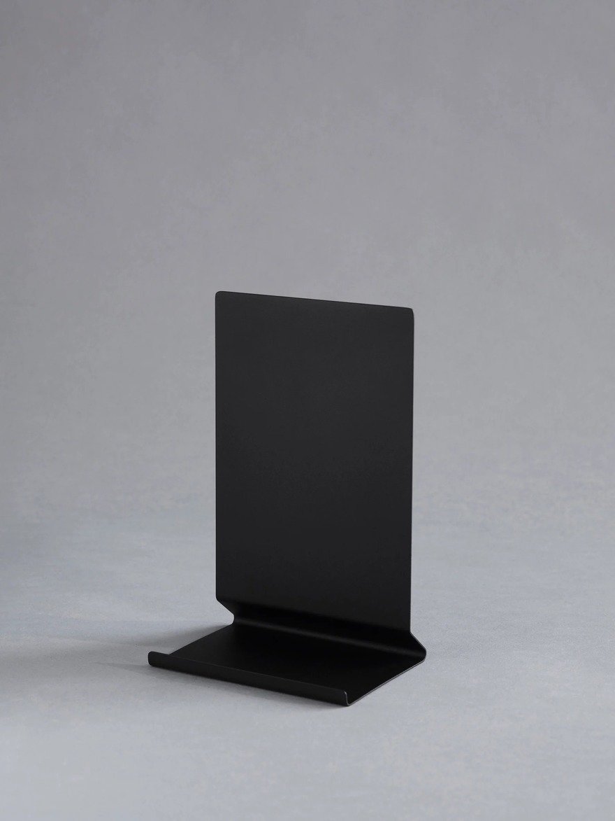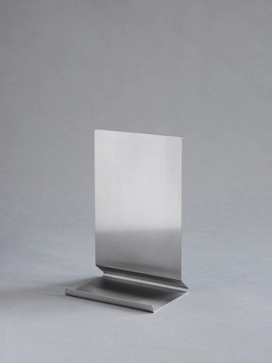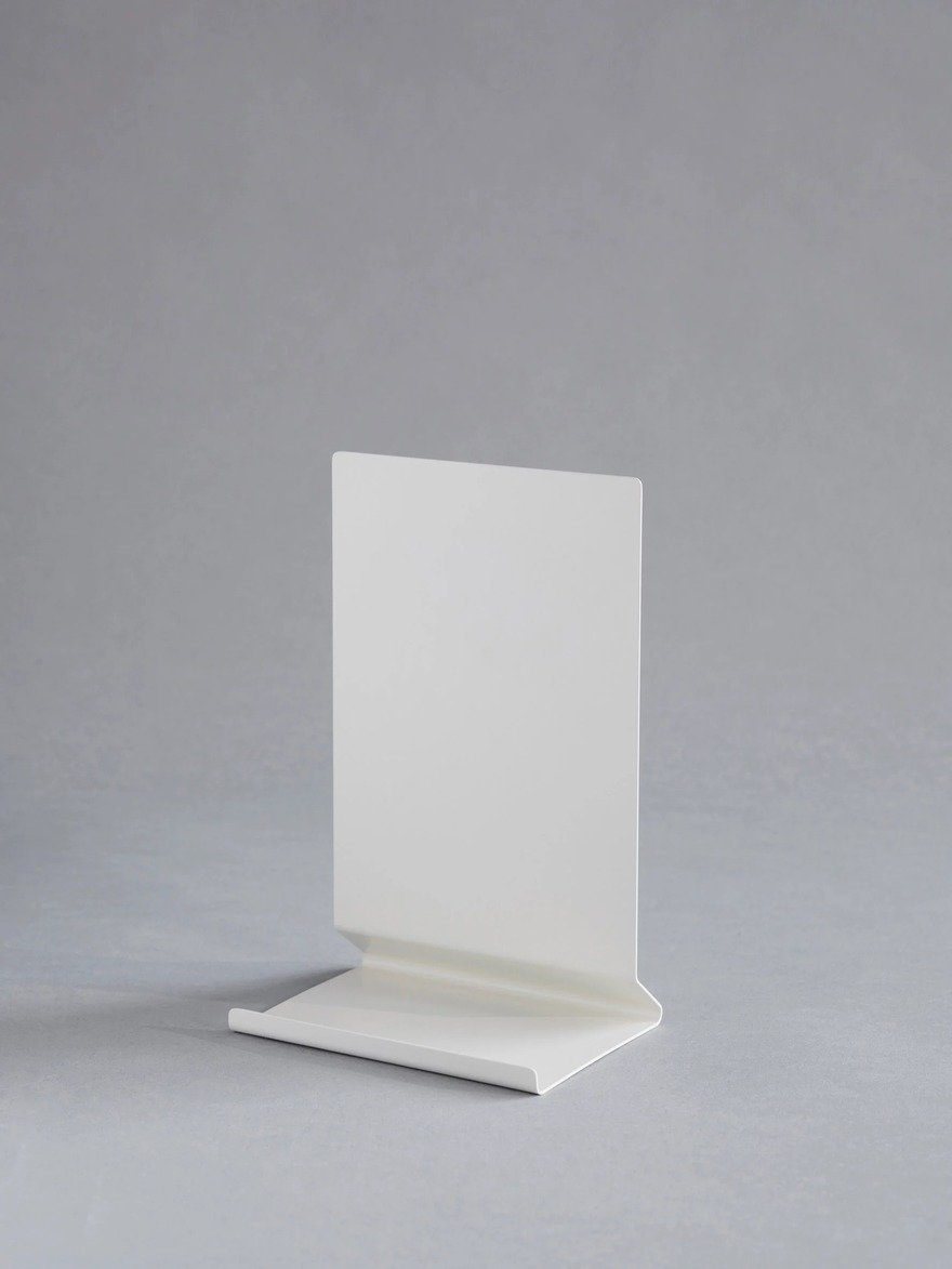 Made of stainless steel, it can either be used as a bookend, a book stand, or a page-holding stand.