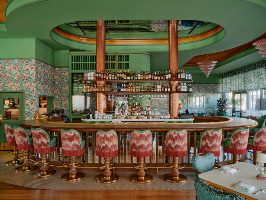 Bar Issi marks Fettle’s fourth collaboration with Boujis Group following Los Angeles restaurants Olivetta and Chez Mia. Set within the recently-opened Thompson Hotel in the heart of Palm Springs, the restaurant and bar’s design follows a simple brief: more is more. Inspired by iconic 1970s imagery of Mediterranean glamour along the Italian coastline, the restaurant and bar channels a playful and colorful aesthetic. The exuberant color palette is brought to life through the abundant use of recycled and sustainable materials, courtesy of several partnerships with eco-friendly manufacturers, including UK based Smile Plastics.