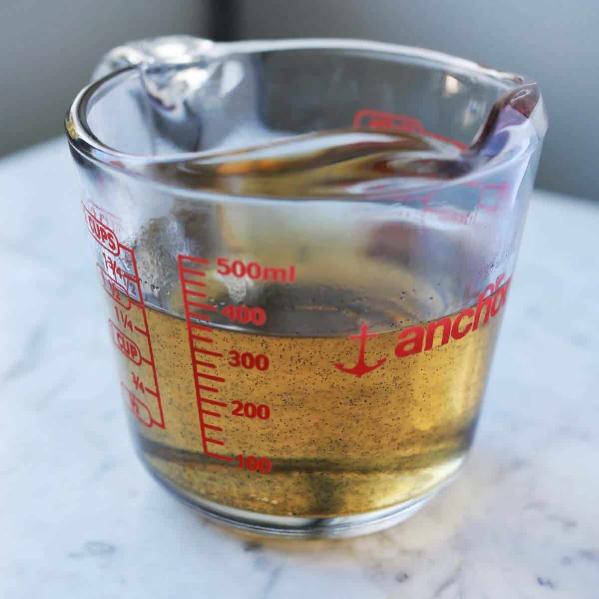 Vanilla simple syrup made with sugar, water and vanilla bean paste