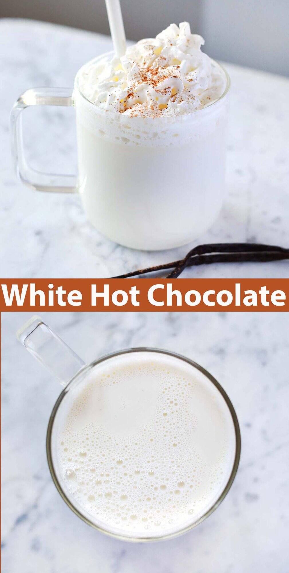 Easy homemade white chocolate hot chocolate made with 4 ingredients